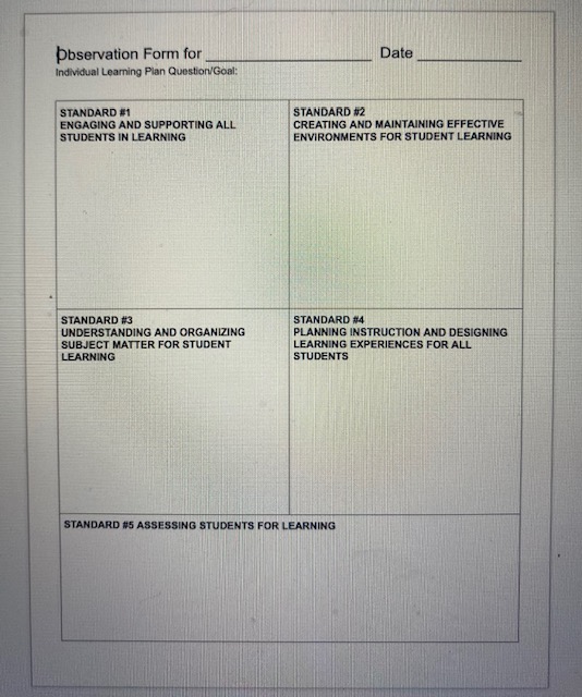 Classroom observation note-taking sheet based on the standards for the teaching profession